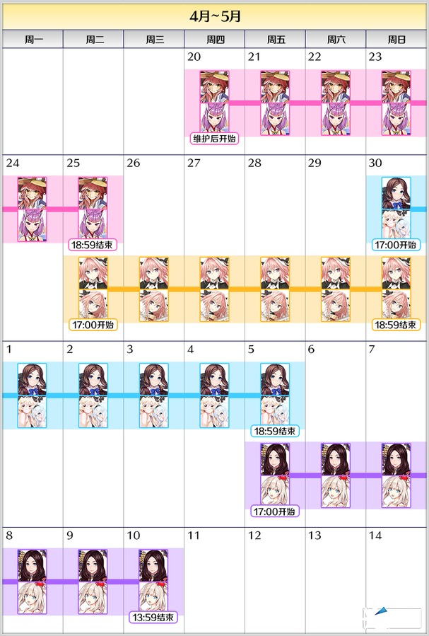 时间:2023年4月20日(周四)维护后~5月10日(周三)13:59为止