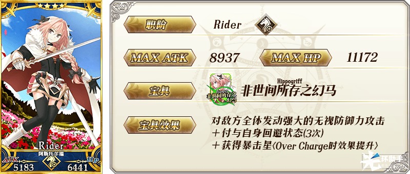 ※以上的「★4(SR)阿斯托尔福(Rider)」的圣肖像为灵基再临第2阶段。