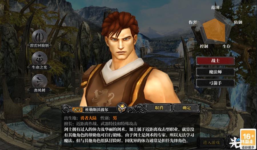 剑士职业生存能力强,自身高额的生命优势,搭配装备上的卓越属性,能够达到极高的坦度。技能爆发高,面对其他两个职业时也丝毫不虚。
