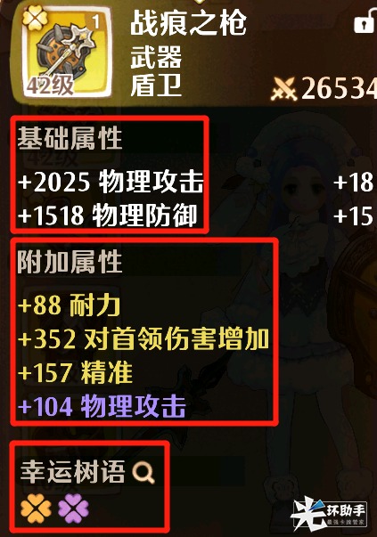 装备词条由三部分组成,基础属性、附加属性、幸运树语: