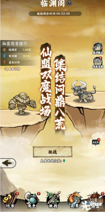 2、仙盟伤害,是仙盟成员每个人当日最高伤害值的总和。