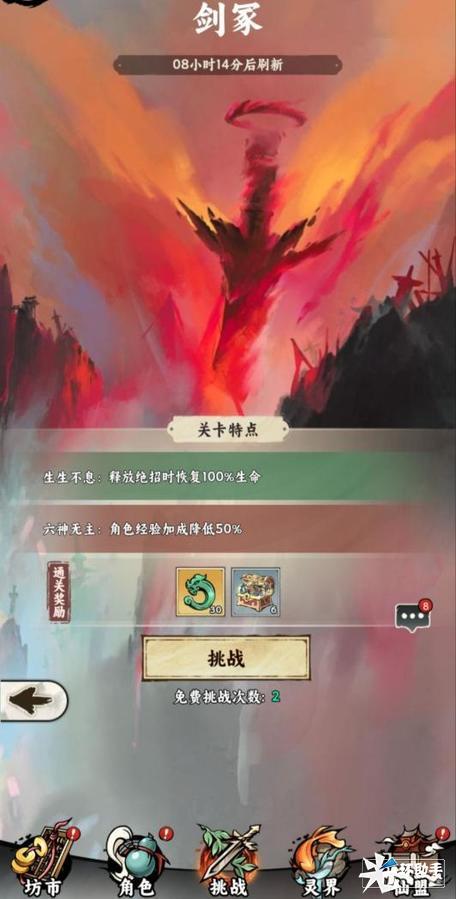 2、每日可免费挑战2次,免费次数用完后,可使用挑战令挑战。