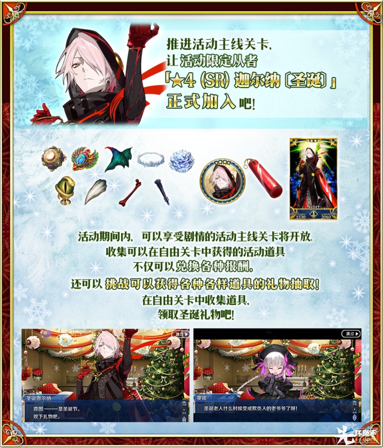 「★4(SR)迦尔纳〔圣诞〕」的从者币能在本次活动的活动道具交换中获得。