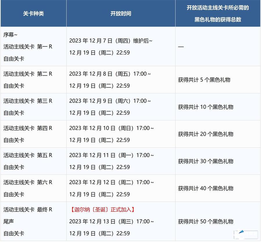 ※根据关卡的推进情况,推进各日程的活动主线关卡需要一定数量以上的「黑色礼物」。