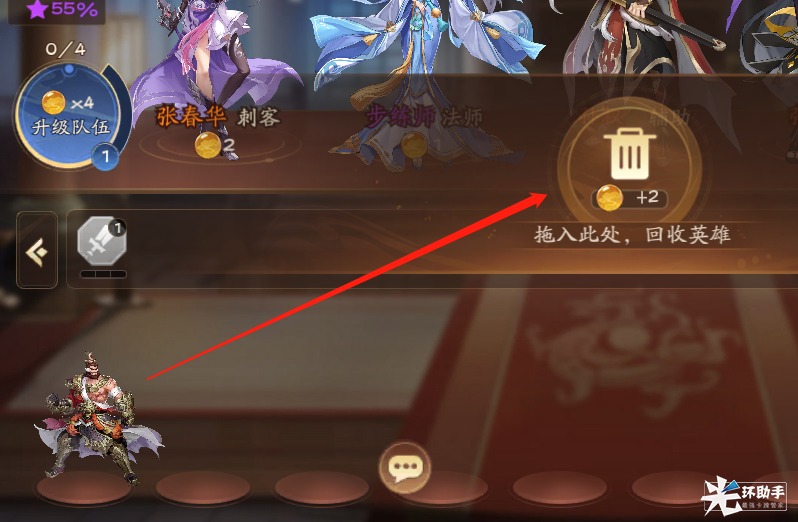 ⑤每拥有2个相同的武将,将会自动合成一个更高星级的武将。多余武将可拖拽放入中心出售区域回收源力水晶