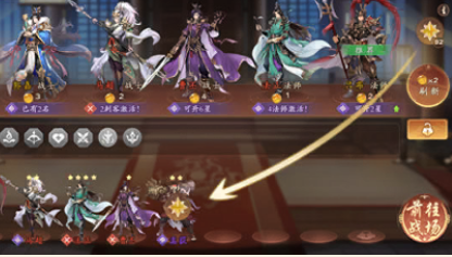 ②每场战斗开始前设有武将购买环节,点击武将即可进行购买,购买武将需要消耗源力水晶