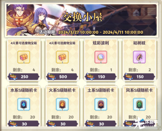 使用热狗可在活动商店内兑换4元素可选魔物宝箱,神工匠碎片、智者碎片,炫彩波利,枯树枝等奖励!