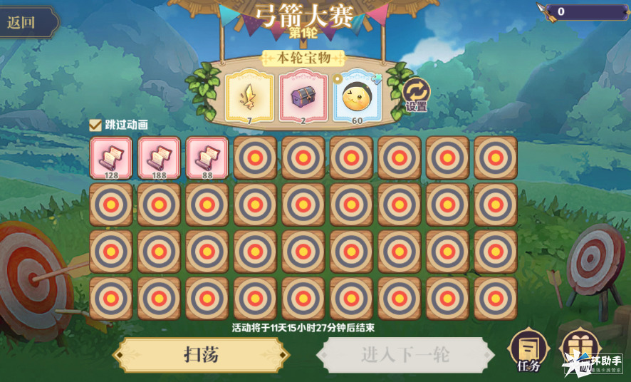 消耗弓箭可以进行射箭寻宝,获得设定的宝物后,可以选择前往下一轮!