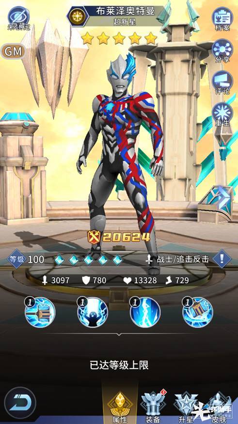点评:游戏内光系最强(俗称天花板),得到后建议把所有资源全部集中在她的身上,他有一个主动技能和三个被动技能。
