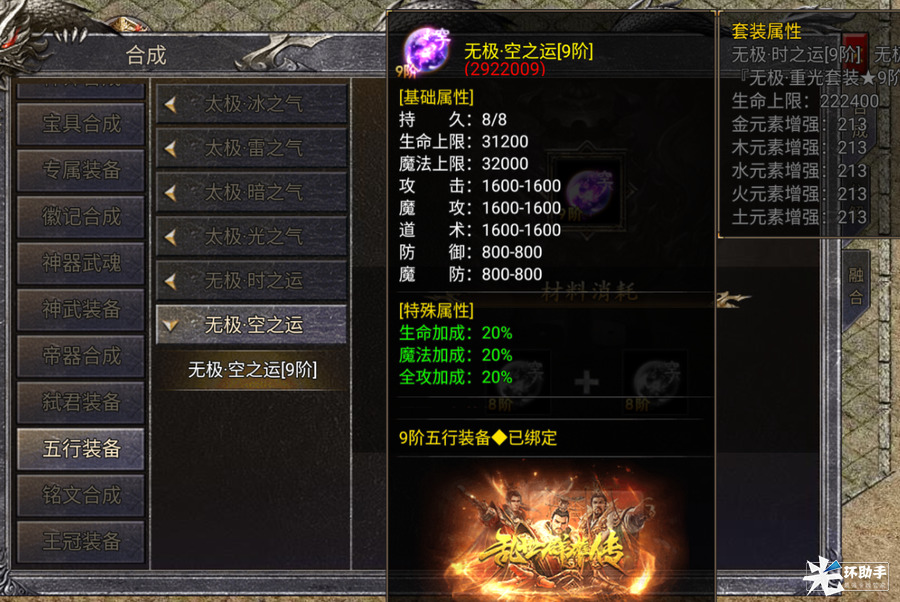 (2)玩家可在合成-五行装备处合成提升五行装备