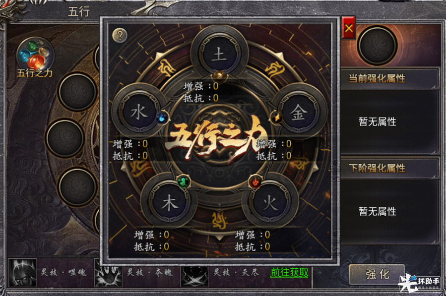 1.五行元素属性分为金、木、水、火、土五种类型,每种类型属性又分为元素增强与元素抵抗两类