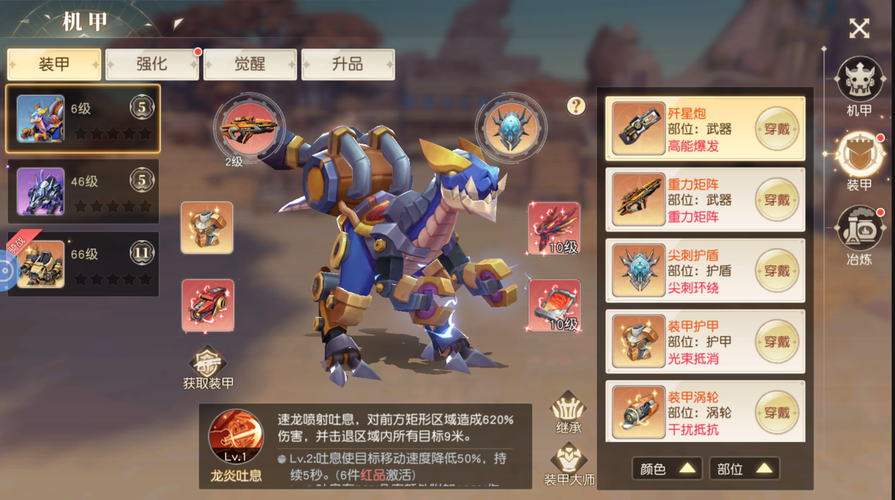 以上是机甲本体的具体情况,主要围绕升级、升阶和升星进行。