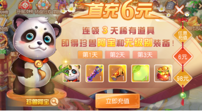 1、首充福利,首冲0.06元就可以获得稀世宝宝阿宝!