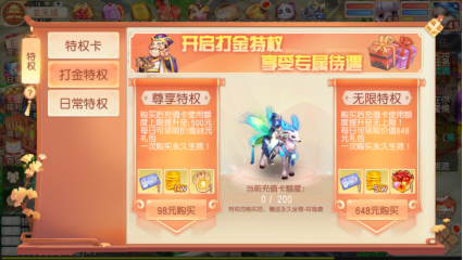 5、购买打金特权让玩家游戏内充值卡无上限,每日还能领取价值648元的礼包!