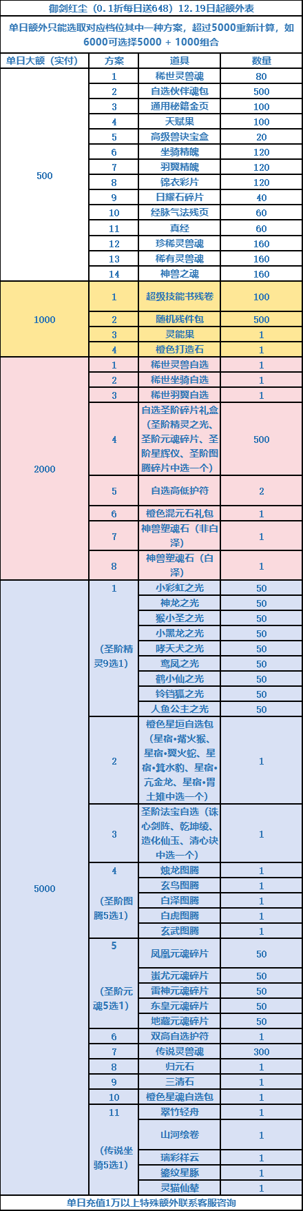 永久累计充值5000(实付50)元:彩凤羽*500、刮刮乐礼券*50、领悟书*20、奇珍令*20