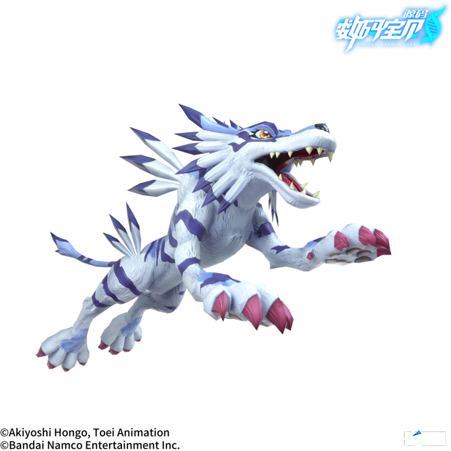 身体覆满了蓝白银色的毛皮,外形酷似狼的兽型数码宝贝。加鲁鲁兽的体毛就像传说中的稀有金属“秘银”那样坚硬,从肩膀长出的刀刃锋锐无比,能够切碎一切接触到的东西。加鲁鲁兽拥有在极寒地区锻炼出的肌肉和强烈的战斗本能,具备食肉动物般的敏捷性和确保击杀目标的准确性,让其他数码宝贝感到恐惧。但是,加鲁鲁兽的智商非常高,对认可的主人或领导者会表现出忠诚并服从。其必杀技“妖狐火焰”能从口中喷出高热的蓝色火焰。