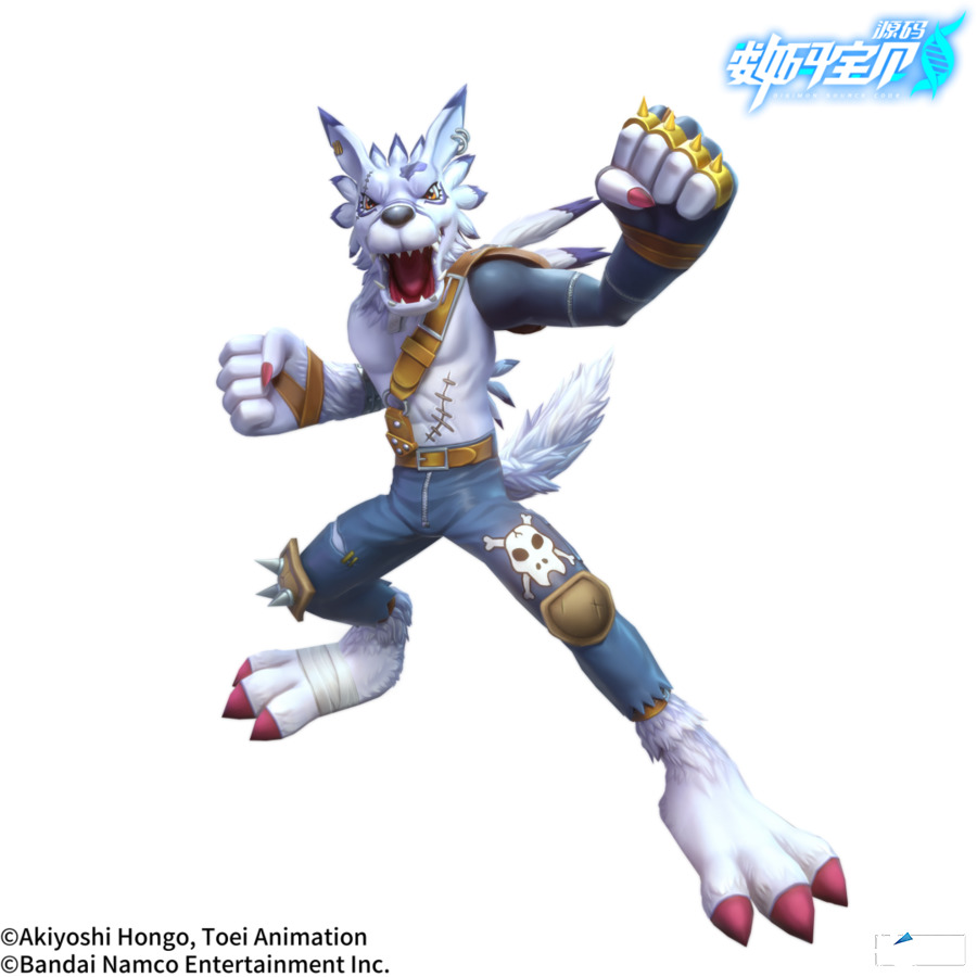 狼人加鲁鲁兽,完全体,疫苗种兽人型数码宝贝。