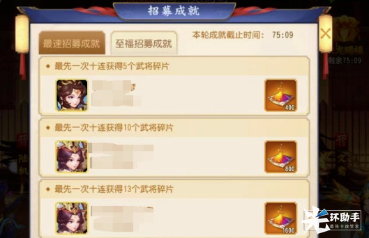 3、活动期间,每日0、8、10、12、14、16、18、20、22点会开启整点积分排行榜,同时也会开启限时成就,每轮限时成就持续110分钟,持续时间内最先完成成就需求的主公才能够获得该成就的相应奖励,成就每轮刷新,主公可以通过积极完成成就来争夺成就奖励;