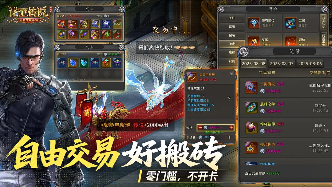 最近很多游戏都说自由交易,但为了稳定物价和防刷,要么限制交易物品,要么限制交易对象,要么限制交易价格。而《诺亚传说口袋版》凭借端游的丰富经验,通过合理的资源投放和有效的市场调控,能够确保游戏物品的长期保值,因此完全无限制的开放自由交易!