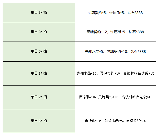 1、单日累计充值达到指定金额即可领取,不支持高档位叠加低档位领取