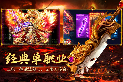 经典传奇玩法,三职合一,战亦是法道,自由切换,公平竞技,延续传奇原味打怪、攻沙、爆装玩法,加入更多全新玩法,炫酷变身,超爽剧情,散人追梦,专属神器,神宠助战,超级BUFF等等,超高攻速,刀刀切割刀刀暴击,轻松砍怪,爆率全开,实现装备全靠打!