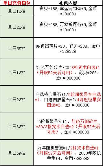 1、单日累计充值达到指定金额即可领取,不支持高档位叠加低档位领取