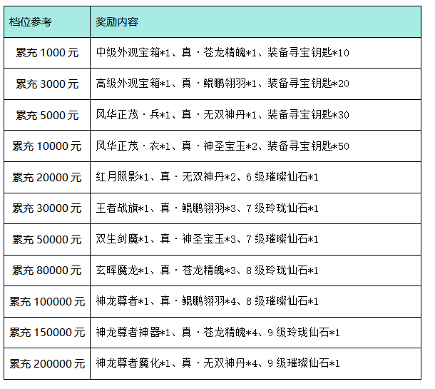 1、活动期间内,仅计算单角色实付累计充值总额,