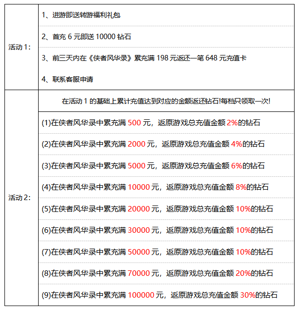 1、从其他游戏转到《侠者风华录》或是召回玩家可获得转游福利