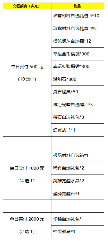 2、充值金额为折后实付金额,高档位奖励可领取低档位奖励,单档位不可重复领取,活动期间每个档位只能领取一次;