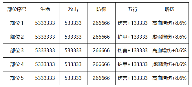 定制部位属性: