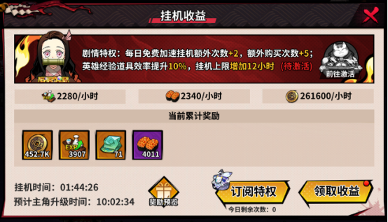 1、挂机收益、日常任务:升级的重要途径,开通特权同时能获取更多的挂机次数和经验。