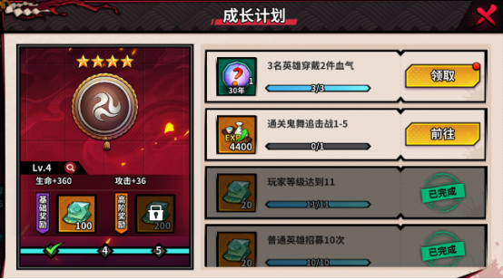2、成长计划:提高成长计划的等级,不仅能获得大量玉璧和其他材料奖励,同时也能获得更高的属性。