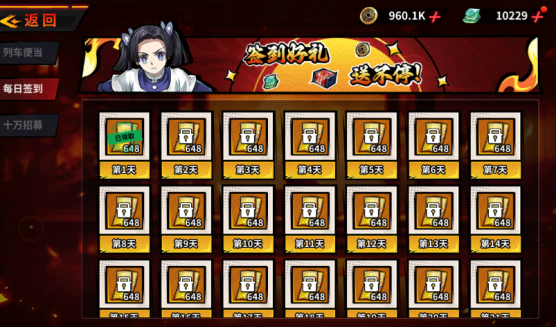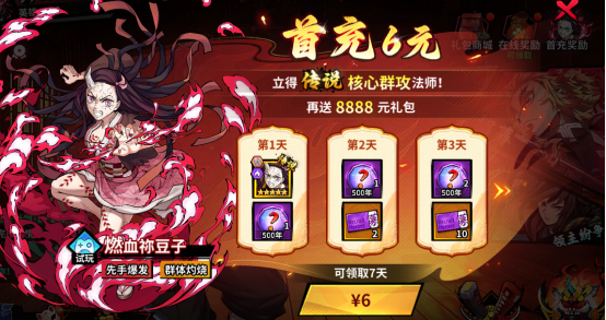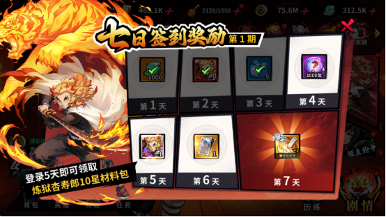4、登录福利:次日登录送直升7星炼狱杏寿郎,5日直升10星炼狱杏寿郎。每日登录还赠送不限时648代金券!