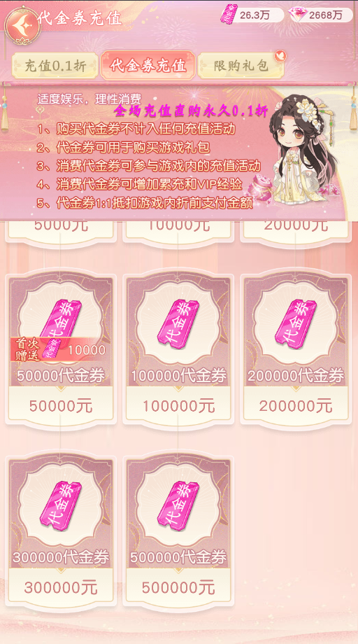 1、仅计算单日内充值代金券或钻石额度,其他充值不计入该活动额度。