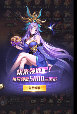 每日登录游戏在主界面点击免费三国币,即可无门槛免费领取三国币*5000