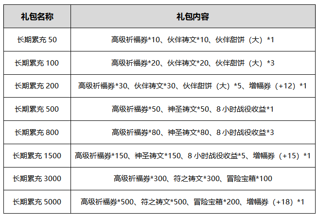 5.充值金额以单个角色的总金额为准,通过小号交易获取角色的玩家在充值达到相应金额后依然可以获取对应礼包。
