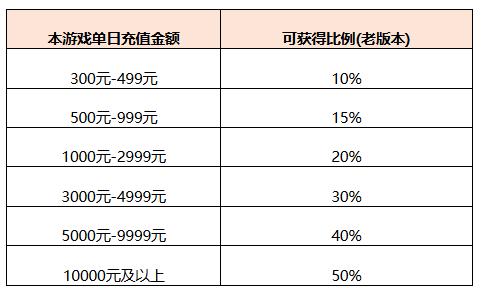 玩家在本平台的老版本战火使命0.1折版本中的有效角色累计实付金额1000元及以上,且在本游戏单日充值金额达到下列对应档位的,可申请转移到本游戏,比例封顶50%