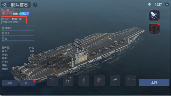 参与战斗或使用“经验书”提升战舰等级,强化攻击、防御等基础属性。