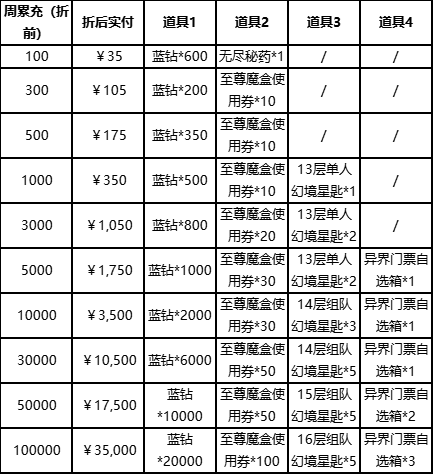注:无需申请,每周一15:00前,通过邮件发放上个自然周满足充值条件的奖励,节假日顺延