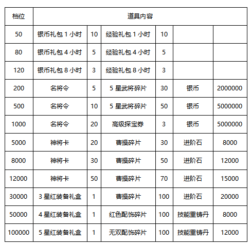 3、活动规则:达到指定实付额度,即可获取奖励,每日每个档位只可获取一次,例如直接充值额度达到100档位,那么100档位(包含100档位,如80,30,10)以下的额度都可领取奖励。