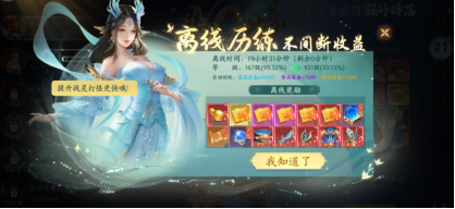 6、离线历练:离线期间会不断存储经验和道具待玩家上线领取,需要使用历练符咒来增加挂机时间。