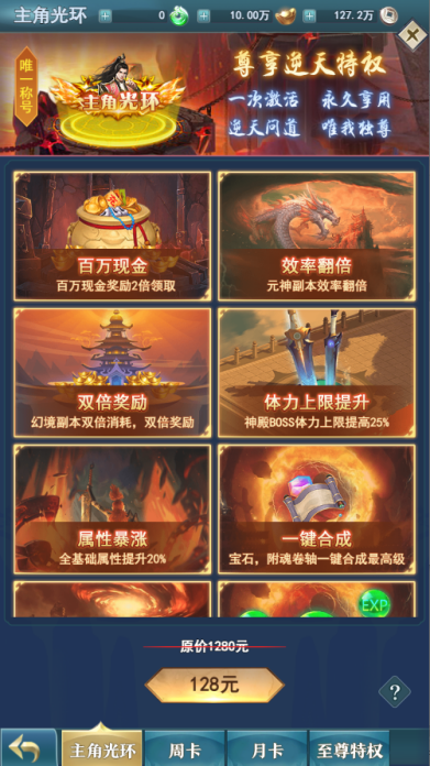 注册完角色可以根据主线任务指引,参与万元真充活动,闯关免费赠送大量真充卡。同时在开服购买主角光环的最划算的,购买后可以闯关奖励*2,相当于是获取双倍的快乐,快速推进关卡是非常好的选择,配合主角光环嘎嘎猛!