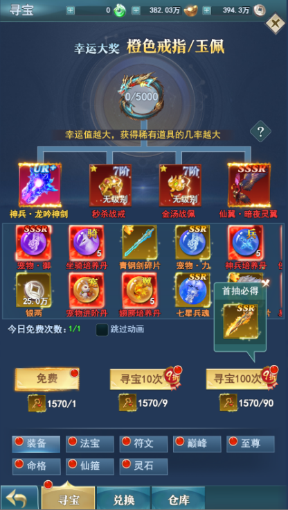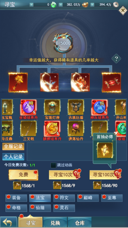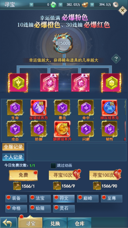 在寻宝内利用上线赠送的万抽礼包可以抽取大量的游戏材料、幻化、装备,让你新手期间战力猛涨横推地图。