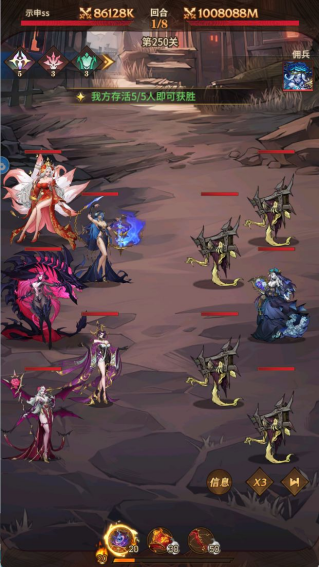 核心是武则天,可以拉一个敌人过来,还提供75%减伤。核心是利维坦、武则天,其他自己摸索,下图是我通关250关的阵容。