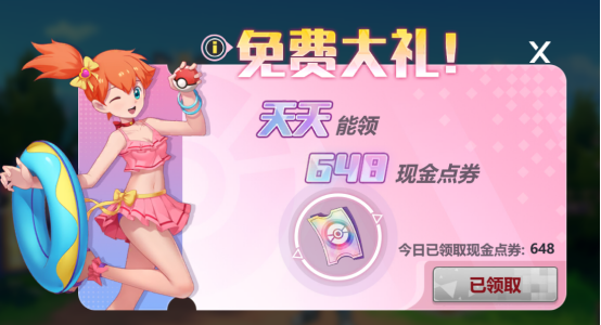 玩家创角后登录游戏可在“天天领代金”"处领取648元(折扣前)现金点券(注:现金点券使用后才会产生VIP经验,该现金点券于平台充值抵扣代金券不同,不参与平台线下充值活动)可直接在游戏内充值时抵扣,现金点券可拆分使用但有效期仅限当日(每日5点清空前日未使用现金点券)