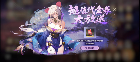 每日送200游戏内可拆分代金券(不限时)主界面“每日放券”处领取