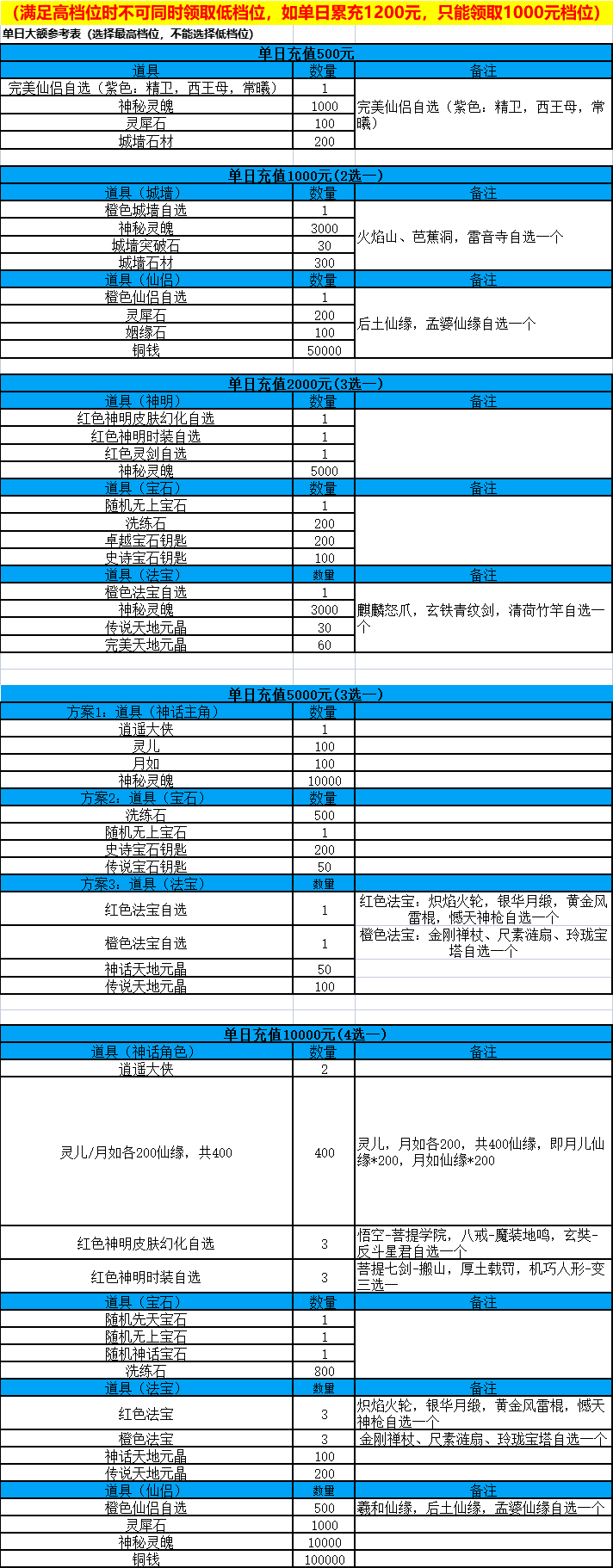 1、活动期间在充值达到指定金额可领取对应档位奖励,计算活动期间内总(实付)金额,每档只可领取一次(满足高档位可同时获得低档位)