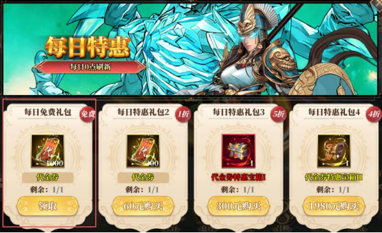 1)游戏内“每日特惠”-->“每日免费礼包”处领取