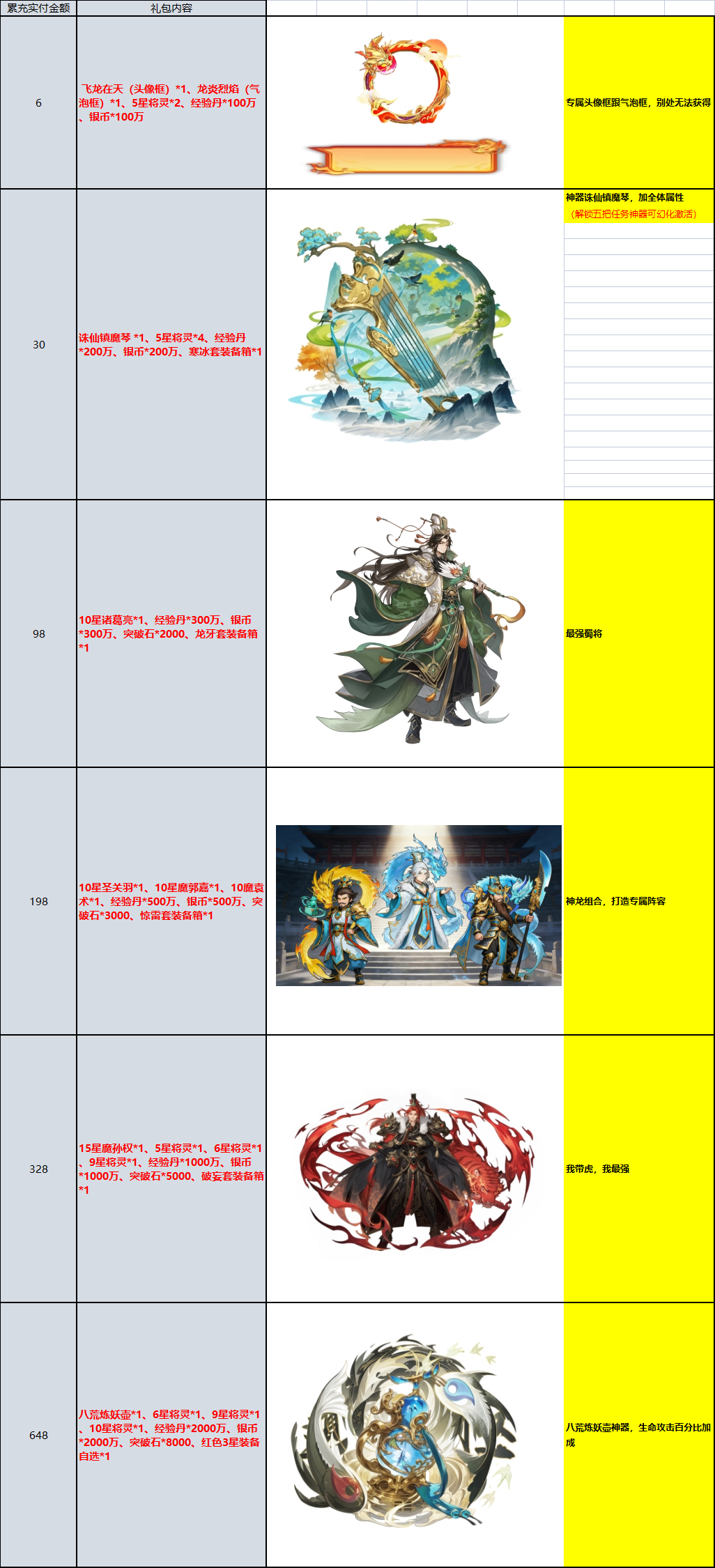 3、新区充值后方返对应的线下礼包