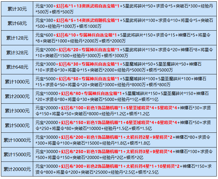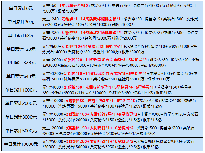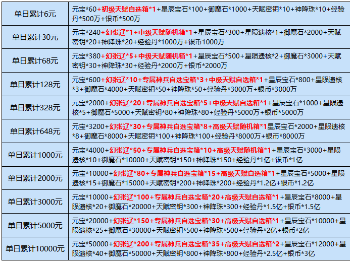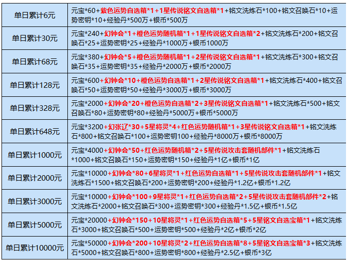2、充值达标仅可领取相应档位一次,不可重复领取(自动发放)
